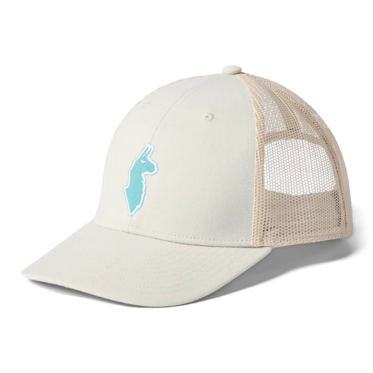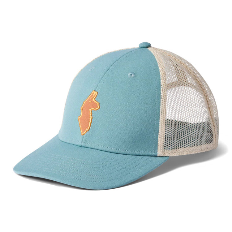 Equipped with a mesh back panel, an adjustable snapback closure, and a woven patch graphic, the Llama Trucker Hat is 100% recycled comfort.