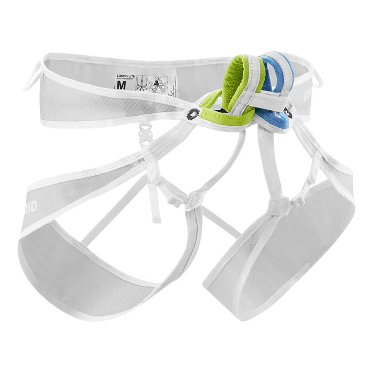 Same proven concept, newly enhanced details! The LOOPO LITE, an ultra-light ski touring and high-altitude mountaineering harness with a small pack size, has already won many awards, but Edelrid have not been resting on their laurels. Instead, we have further improved various aspects, especially the handling and durability. The new, laminated outer material is particularly robust. The broader load distribution enhances comfort while the Light Frame construction with the two circumferential, load-bearing straps keeps the weight extremely low. The LOOPO LITE can still be put on without having to remove your skis/crampons. In fact, this is now easier than ever thanks to a push button that connects the two tie-in loops and an elasticated strap for adjusting the fit. The leg loop size can also be adjusted.