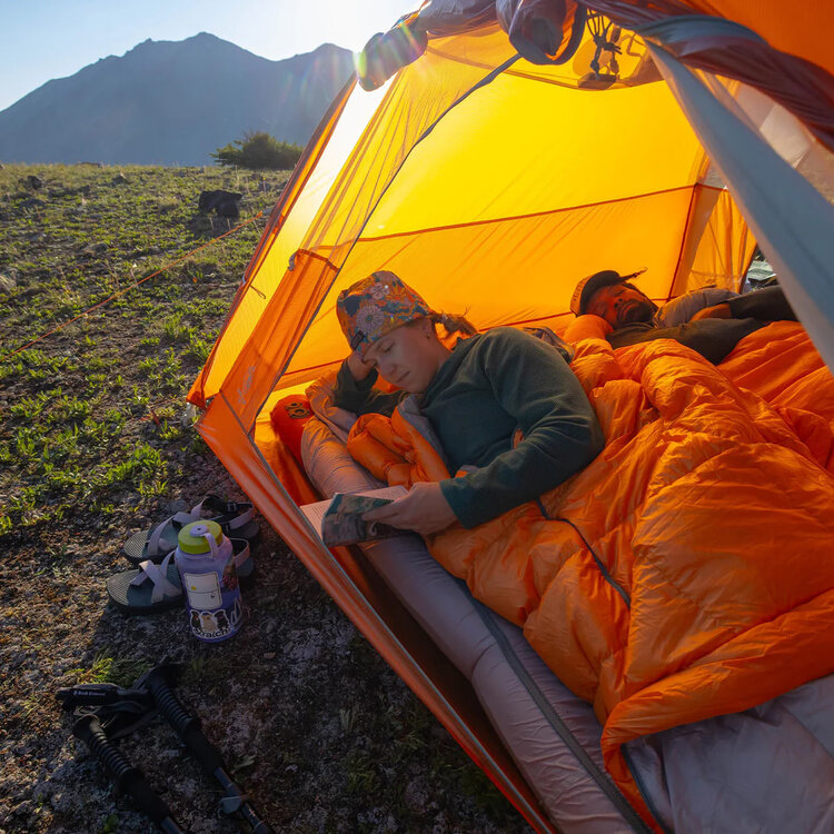 This modular bag design offers just what you’d expect: three bag configurations in one simple, yet technical sleep system that stays attached to your pad, so you won’t roll off in the middle of the night. Use just outer bag for warm summer nights, just the inner bag when temperatures start to drop, and on the coldest trips combine both for ultimate warmth - it's the only bag you need for 3-season camping, backpacking and everywhere in between. These lightweight, down-fill bags deliver comfort and versatility no matter your sleep style or temperature preference.