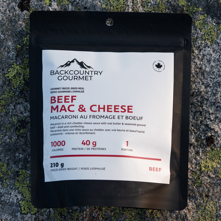 Comfort food at its best. Tender macaroni coated in a creamy cheddar cheese sauce, enriched with butter and paired with seasoned ground beef. Bold, hearty, and satisfying – perfect for your next adventure or an easy meal at home.