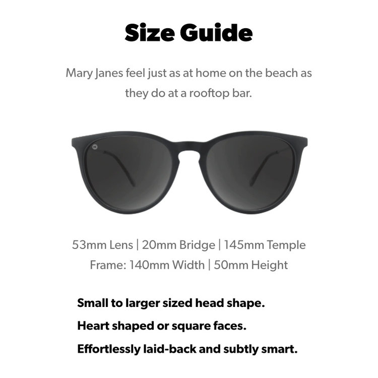Spoiler alert: this season, black is the new black. Nothing beats the slim, simple look of matte black frames paired with polarized smoke lenses, especially in our Mary Janes frame style. These sunglasses suit medium to small face shapes and are just retro enough to still be cool today. Not only does black go with everything, these shades fit every circumstance you can throw at them. They’re also durable enough for daily life, with impact resistant lenses and UV400 protection.