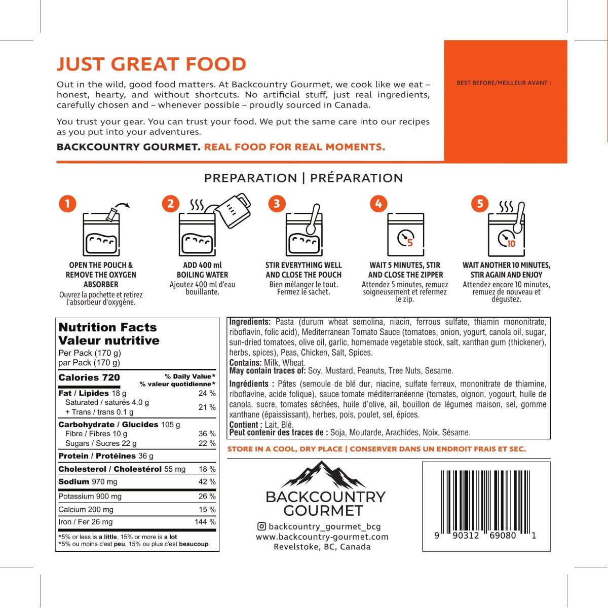 A flavourful Mediterranean-inspired meal. Tender chicken simmered in a rich tomato sauce with aromatic herbs, combined with sweet peas and a touch of creamy yogurt. Served with orzo pasta for a hearty and satisfying dish.