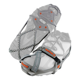 Multi-faceted steel beads provide hundreds of biting edges. Slip them over your shoes for a secure grip on boilerplate ice or snowy streets. The beads are self-clearing and can transition from gravel, rock and mud easily. Wear them on a walk or run and yo