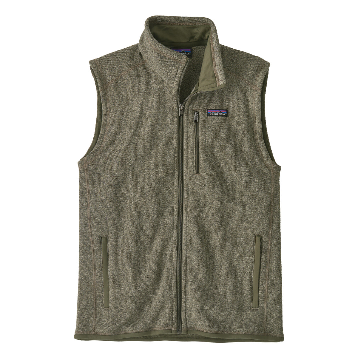 - Full-Zip Vest with Stand-Up Collar: Full-length zipper with a zip-through stand-up collar and a kissing-welt zipper garage