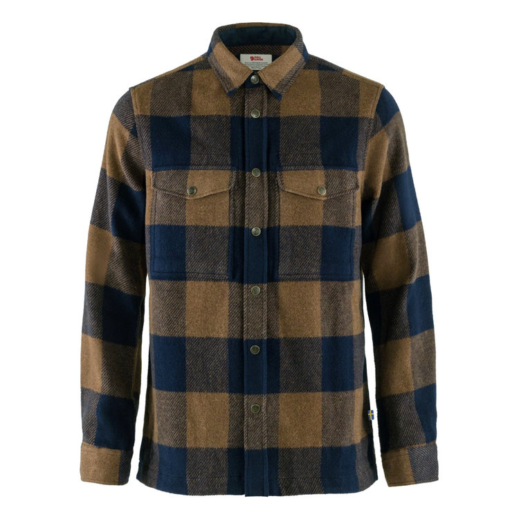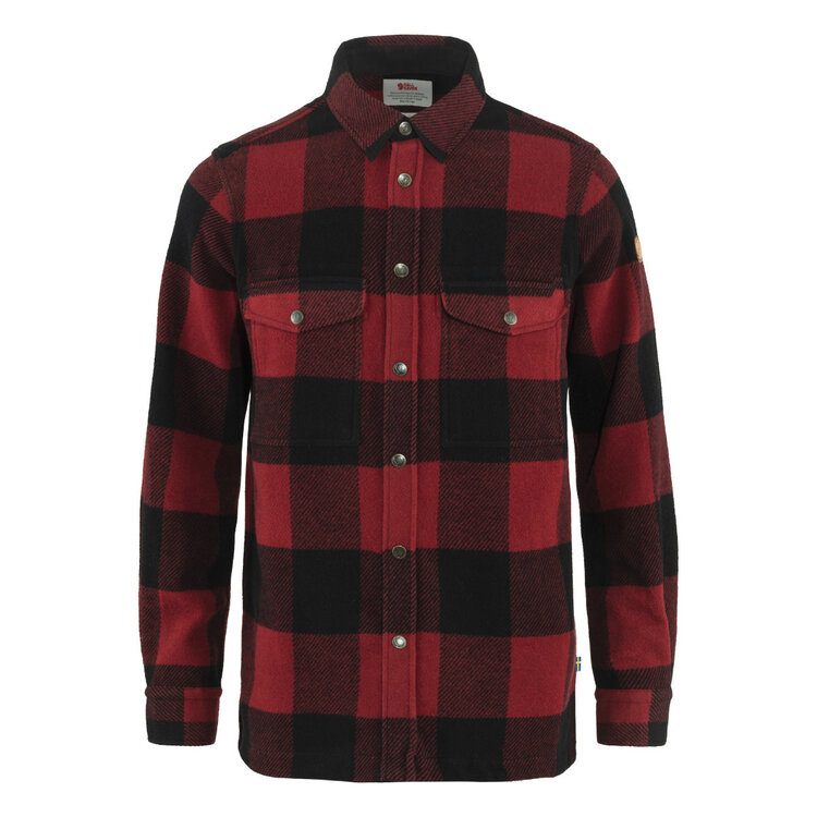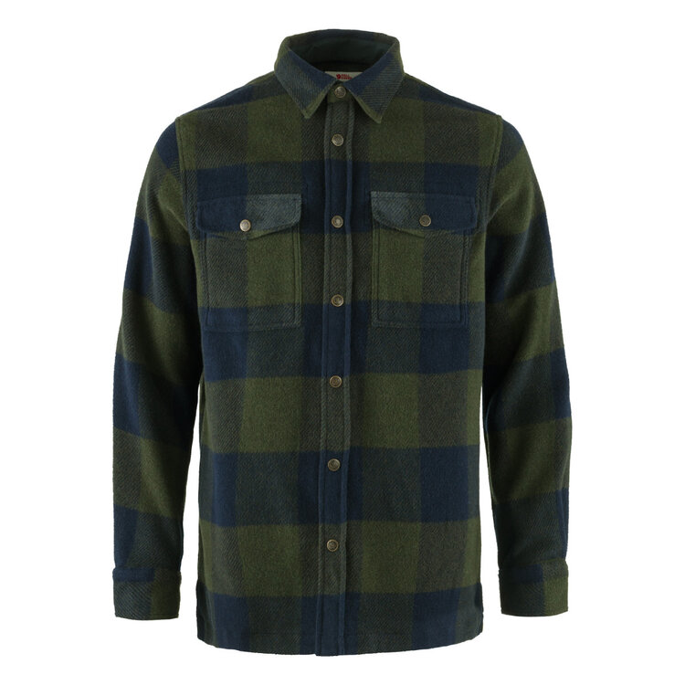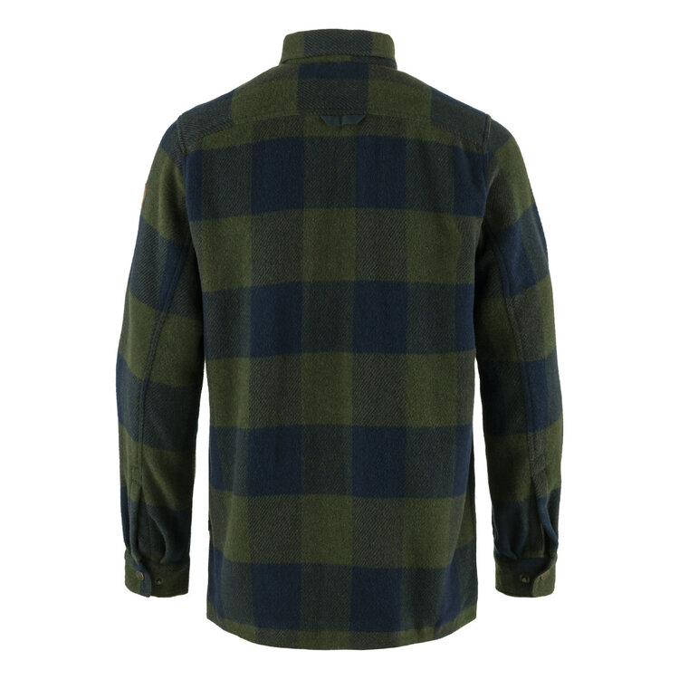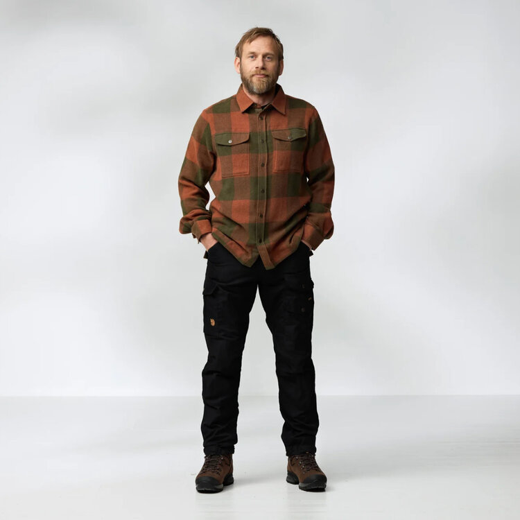 Robust, warm shirt in flannel made with recycled wool. It combines the warmth of wool with the durability of synthetic fibres. Details in G-1000 Eco on the inside of the collar, cuffs, pocket flaps and front opening. Both chest pockets are positioned a little lower than other shirts for easier access. Works well as both a light jacket on mild autumn days and as a robust insulating mid layer on cold outings in the mountains.