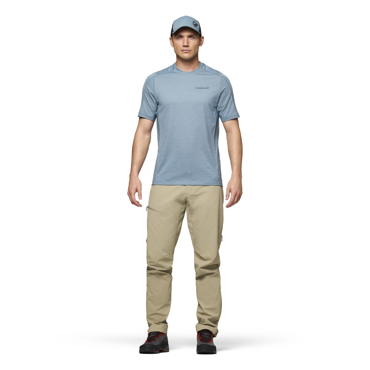 Norrøna uses a premium equaliser/merino mix fabric in this product because of the wool’s natural thermal regulation and anti-odor properties, the durability, low weight, and moisture-wicking performances of Polyester and Nylon.