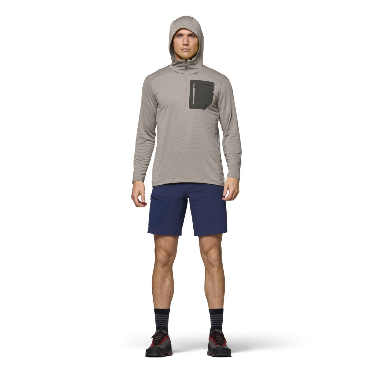 This lightweight fleece hood (226g in size L) is made for mountaineering but works excellent for other high pulse activities like trail running, ski touring and general outdoor sports due to its superb breathability. This is a lightweight midlayer with a grid-structured interior – allowing for plenty of airflow. Perfect for use in both summer and winter. This fleece hood is so comfortable and soft that you can wear it directly against your skin if you like.