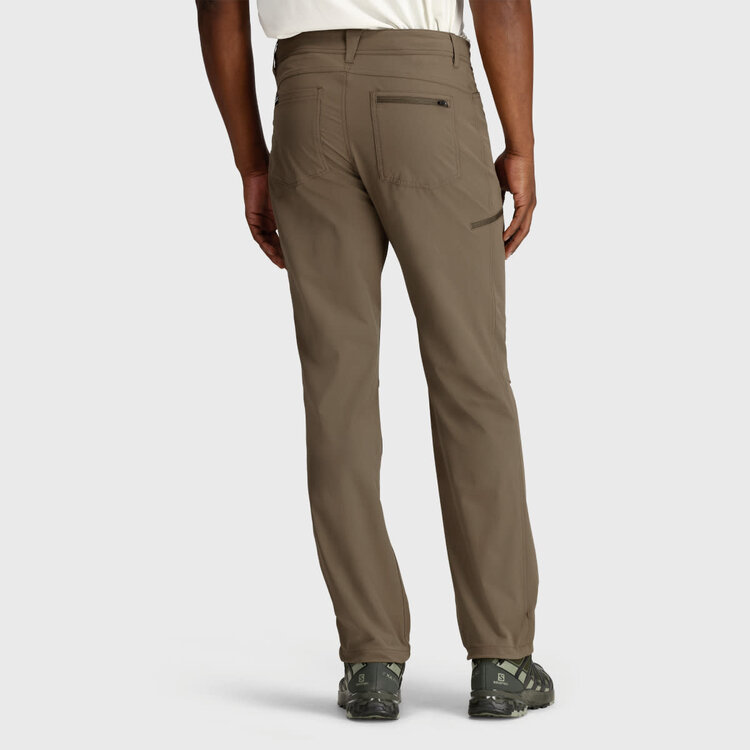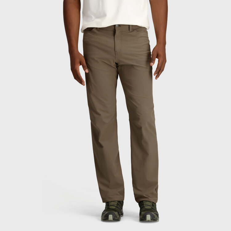 Crafted from Outdoor Research's legendary recycled nylon blend, these pants are wind and water-resistant, quick-drying, and stretchy—designed to move with you wherever your day takes you.Thoughtful features like a harness-compatible waist and a brushed tricot-lined waistband provide comfort and functionality for climbers, hikers, and travelers alike. The metal button closure and adjustable drawcord ensure a secure, custom fit, while drop-in hand pockets keep your essentials close at hand.