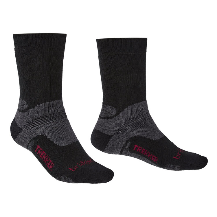 Engineered advanced zonal padding system for support and comfort this is the ultimate sock for long or multiday expeditions. Merino Performance Fusion Technology provides resilient padding, balanced insulation, moisture wicking and outstanding durability for all day comfort. The Performance Fit is close and supportive and wont slip down or bunch in your footwear. The Flat Toe Seam minimises bulk that could cause irritation in the toe box and the sock is kept securely in place with an Elasticated Arch and 3D-shaped heel cup. Built on a structure of Lycra® and set by Bridgedale's Thermo Fit process ensures the sock returns to its original shape and size after every wash. Tested and loved by 1000s of walkers, hikers and explorers the Trekker has been copied but never bettered.