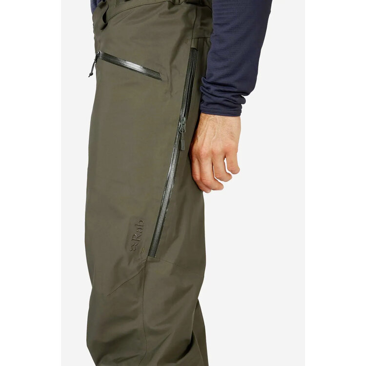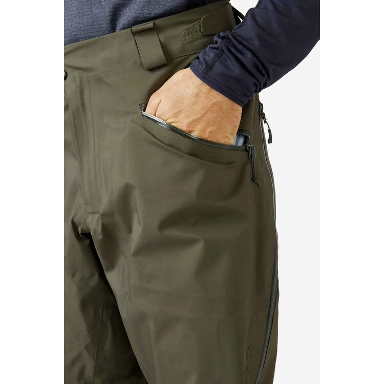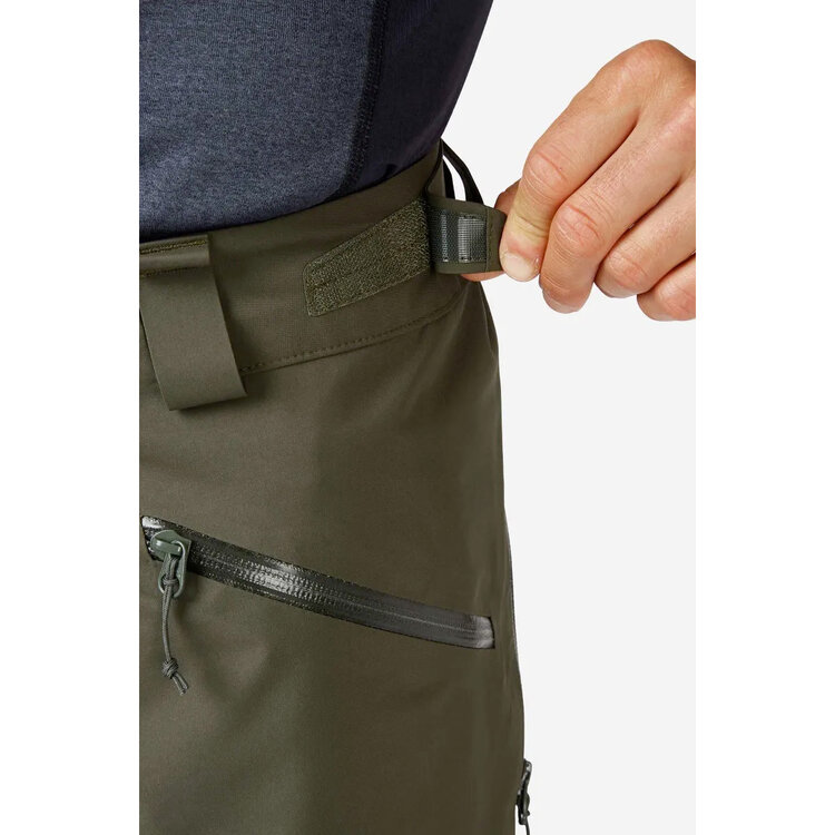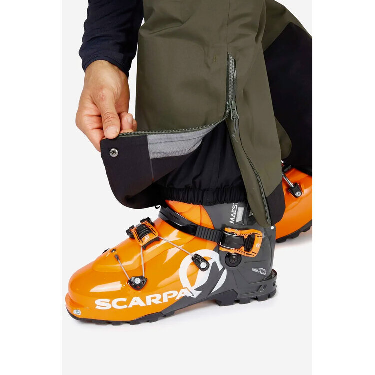 The zip and snap closure at the hem provide easy access to your ski boot buckles, and an internal gaiter seals out snow spray. On the climb up, expel heat using the large, zipped thigh vents, while the deep lined waistband keeps you comfortable throughout long mountain missions. Hook and loop waist adjustments, combined with belt loops and brace attachment points, give you the flexibility to achieve the optimal fit for tackling your next ski objective. Perfect for stashing your skins during the descent, the three external pockets include two hand pockets and a useful thigh pocket.
