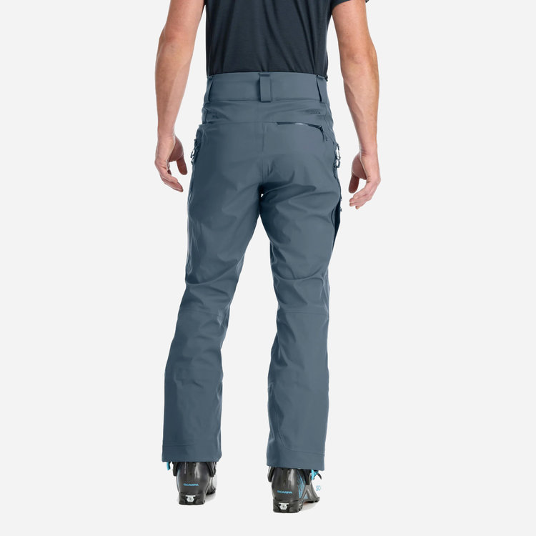 Giving you options to completely customise the fit, the pants have hook and loop waist adjustments as well as belt loops and attachment points for braces. Pockets have been carefully positioned for easy reach and for the least interference when you’re skinning and skiing. The interface with your ski boots is cleverly designed with an adjustable hem and a high stretch, internal gaiter to seal out the snow. Complete with tough crampon patches, these pants are equipped for intrepid ski adventures.