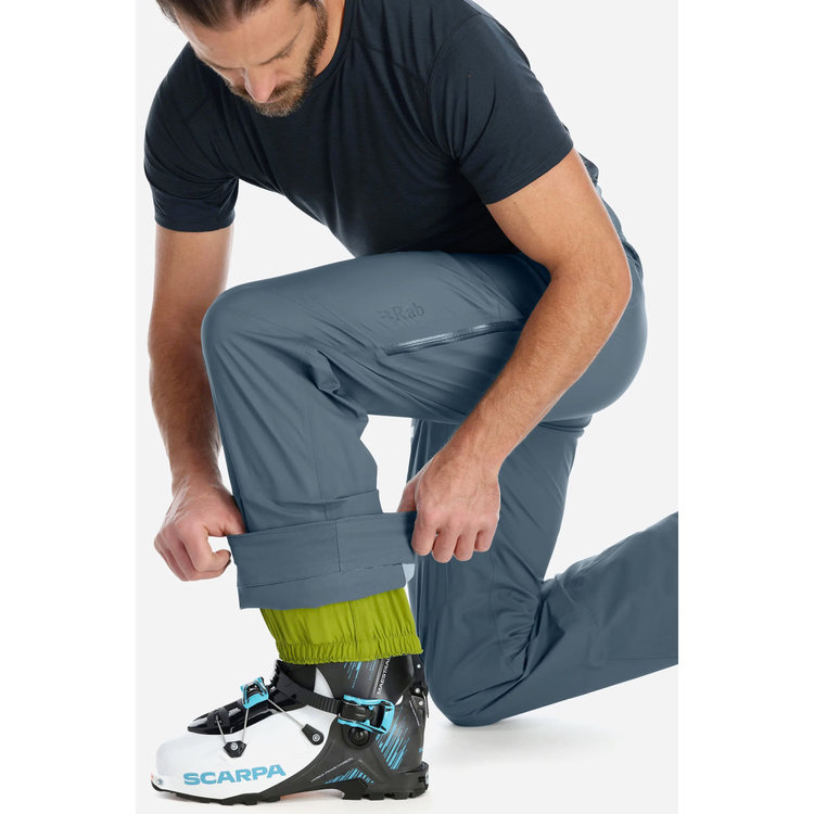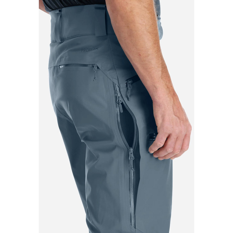 The Khroma Kinetic Pants are built for ski touring and ski mountaineering when mobility, weight, and breathability are the highest priority. They offer the protection of a hardshell and the comfort of a softshell, constructed with Rab's own Proflex™ fabric. Efficiently pulling moisture away from the body, these ski pants are ideal for keeping a good pace on the skin up, with excellent stretch and mobility for kick turns on steep terrain and boot packs. On spring missions and fast-moving climbs, you can dump heat quickly through the zipped thigh vents.