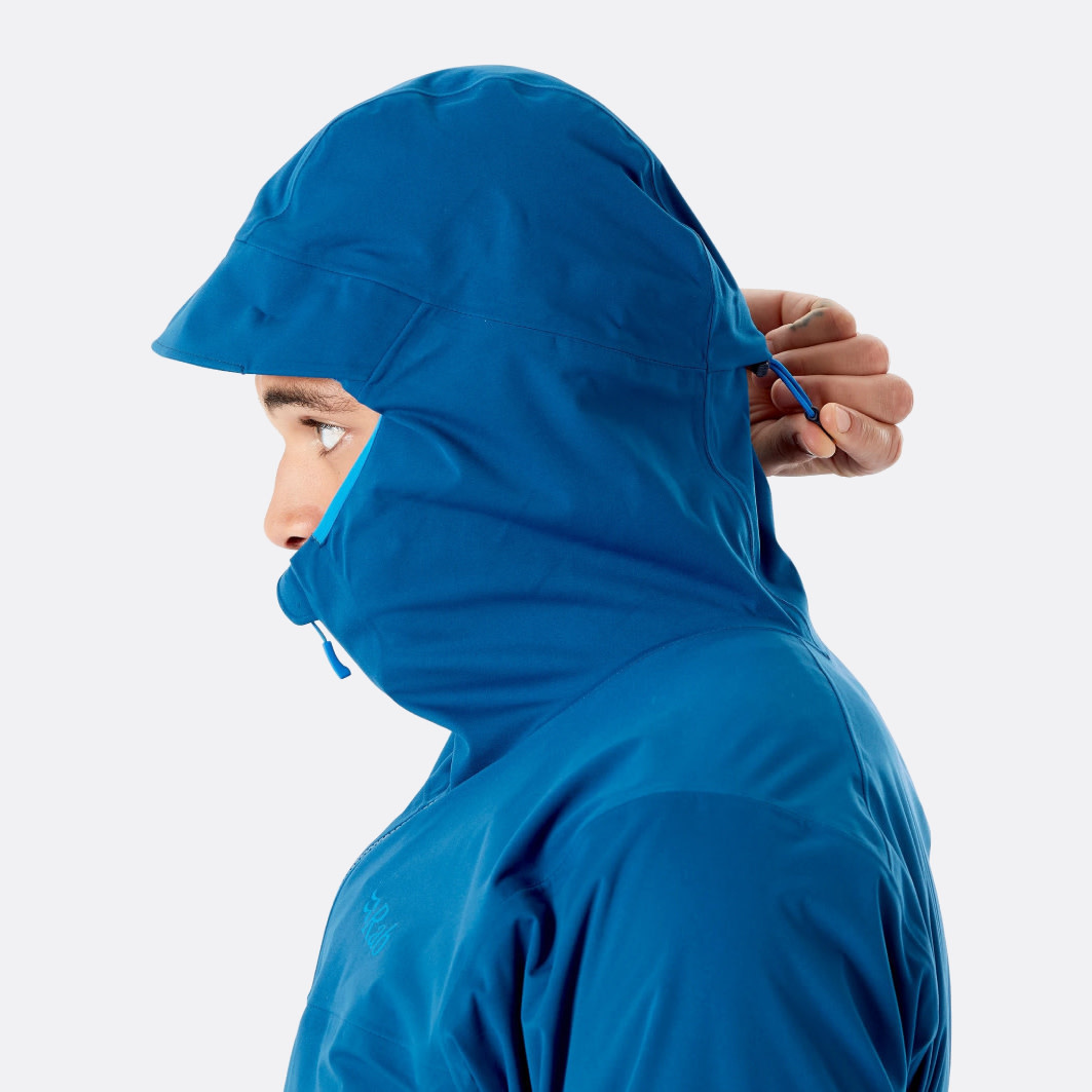 Lightweight and waterproof, with extraordinary stretch and breathability, it is the ideal outer layering piece for unimpeded mobility during fast-paced days in the mountains. Its recycled Proflex™ fabric uses a knitted outer and backer to harness the natural stretch of the internal PU membrane, while enabling exceptional moisture transfer during arduous climbs. The under-helmet hood is equally comfortable, courtesy of a fleecy chin guard, and a flexible polymer peak.