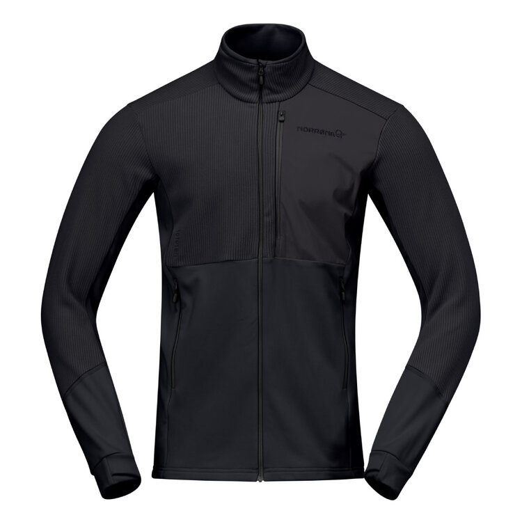 Key features include full front zip, hand-warming pockets, a soft and comfortable collar, a chest pocket, and comfortable, stretchy cuffs with thumb holes.