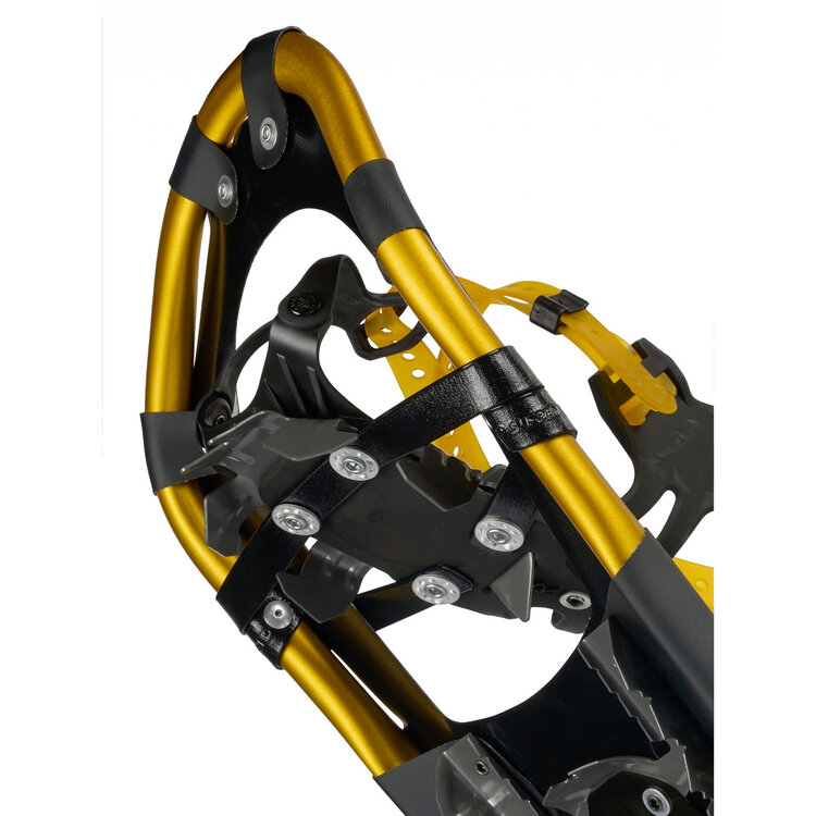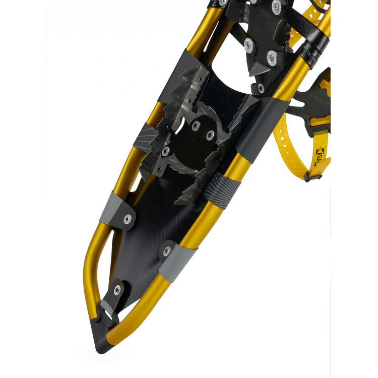 - Spring-Loaded™ Suspension: Precision-focused, Spring-Loaded™ Suspension’s (SLS) patented design, suspends the snowshoe close underfoot so it can move freely with its intended articulation, absorbing impact, flexing naturally side-to-side, and allowing deeper crampon penetration into the slope for an compromised stride.