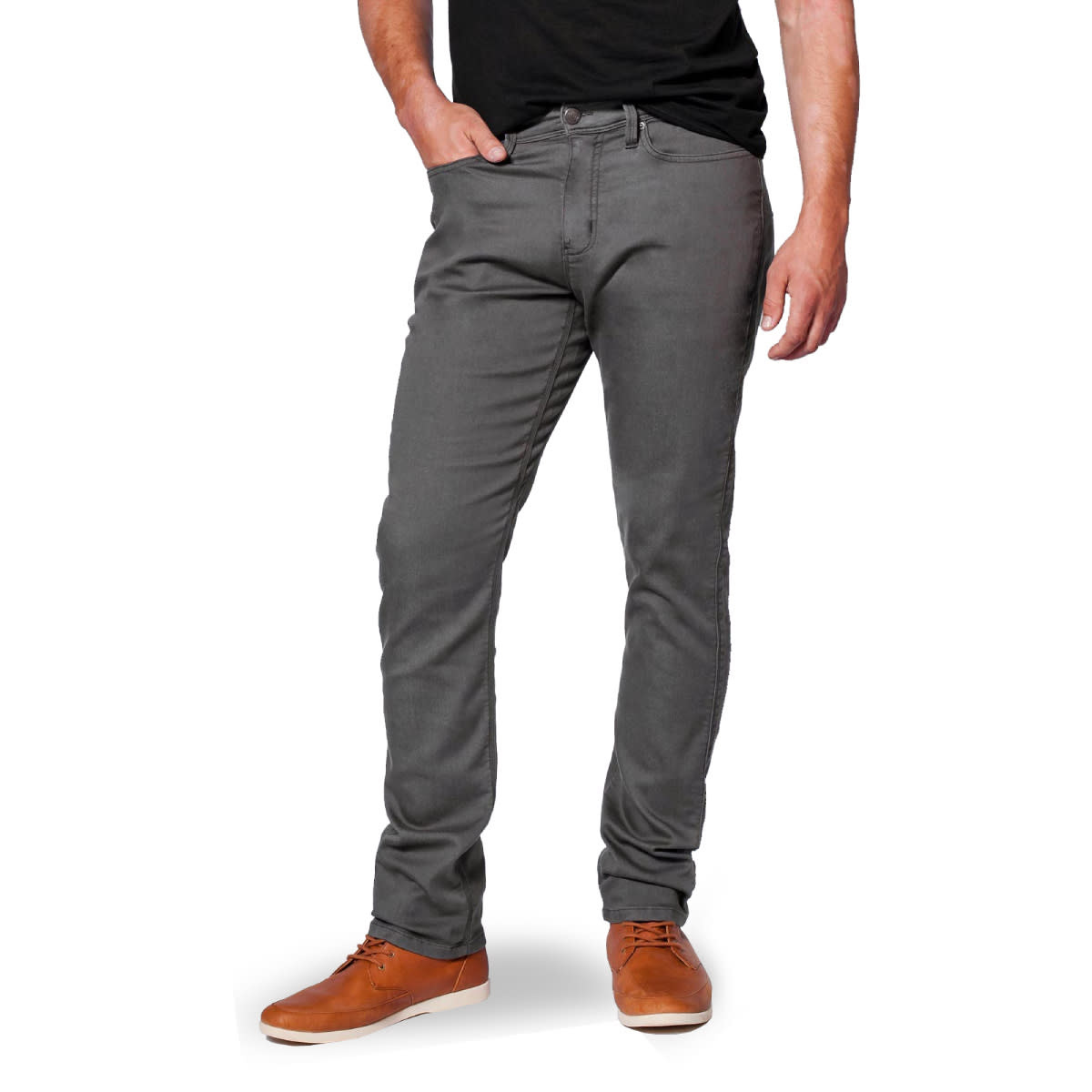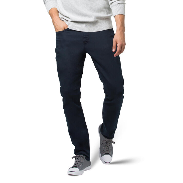 - Developed for athletic builds, this 5-pocket offers a relaxed fit through the hip and thigh with a tapered leg.