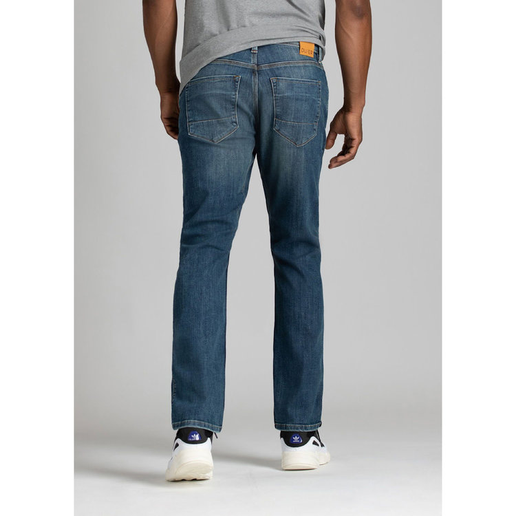 - Developed for athletic builds, this 5-pocket offers a relaxed fit through the hip and thigh with a tapered leg.