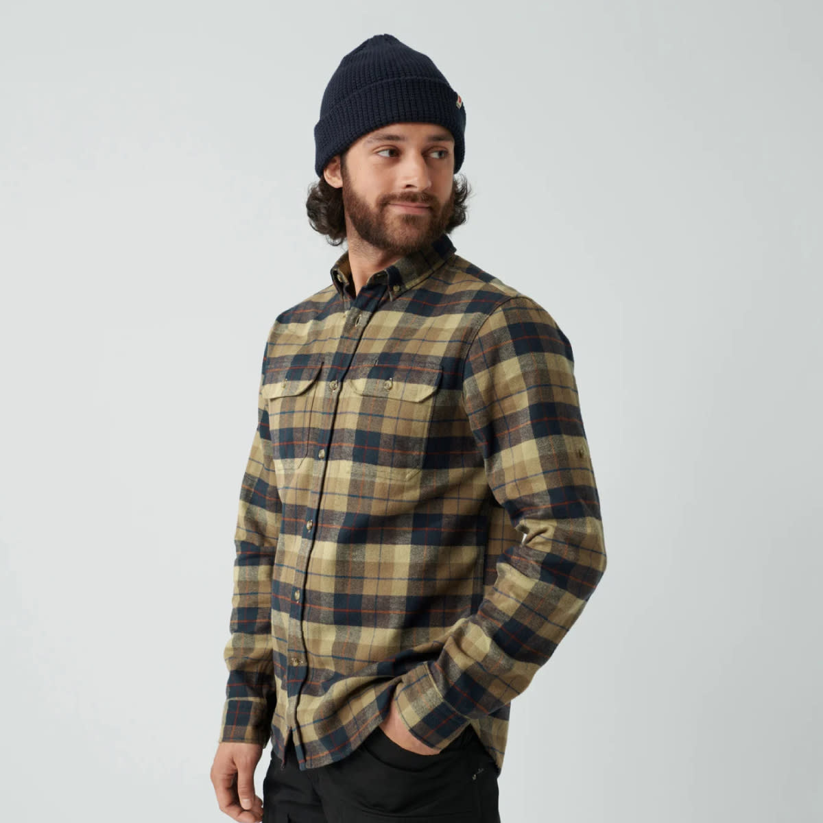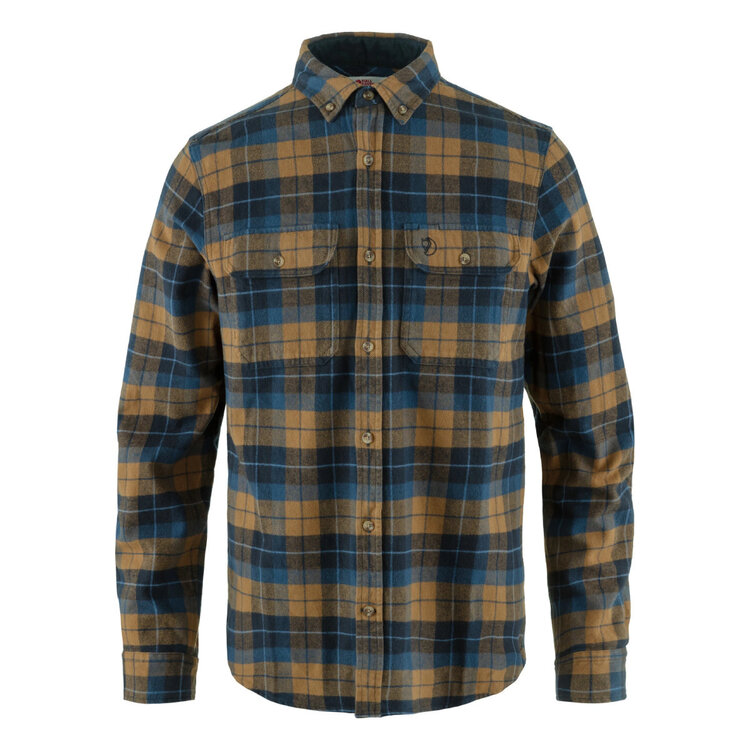 Long-sleeved outdoors shirt with button-down collar and regular fit. Made from soft cotton flannel with G-1000 reinforcements on the inside of the collar, sleeve cuffs and pocket flaps. Two chest pockets with pen holders. The sleeves can be rolled up and kept in place with a button.