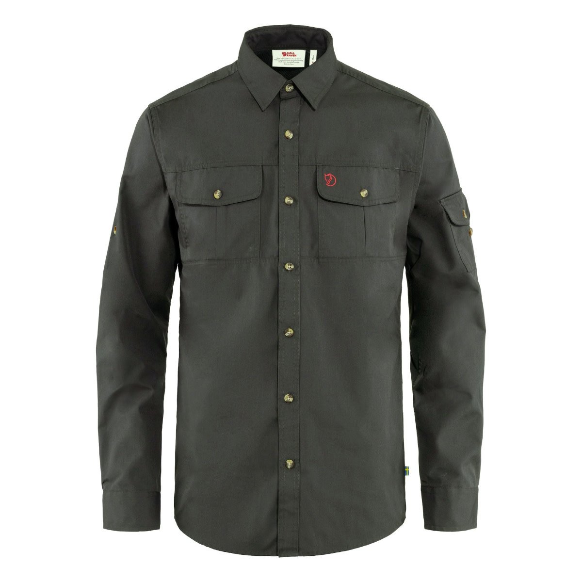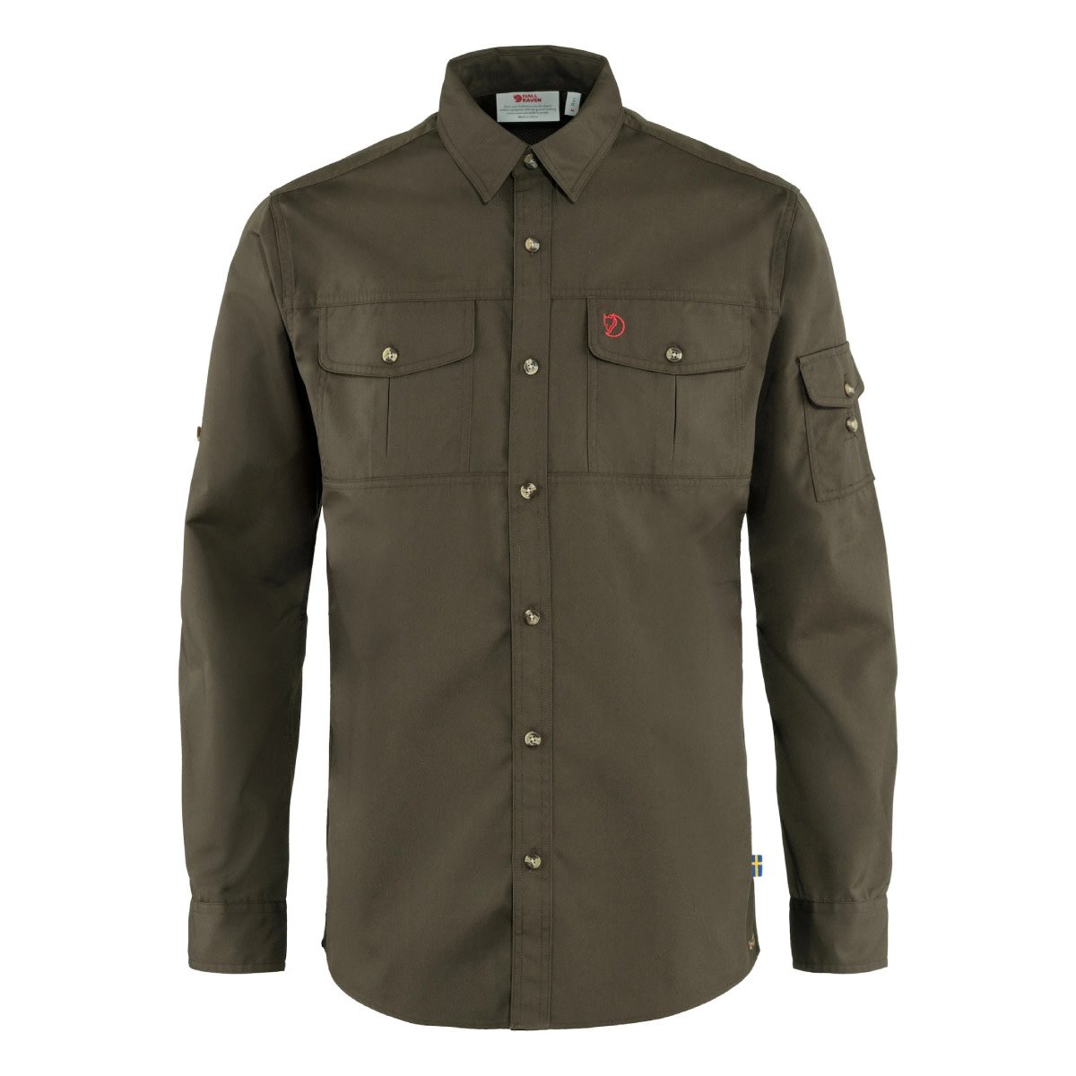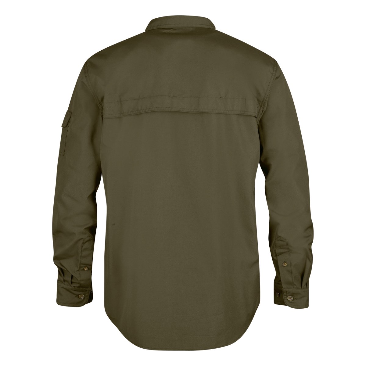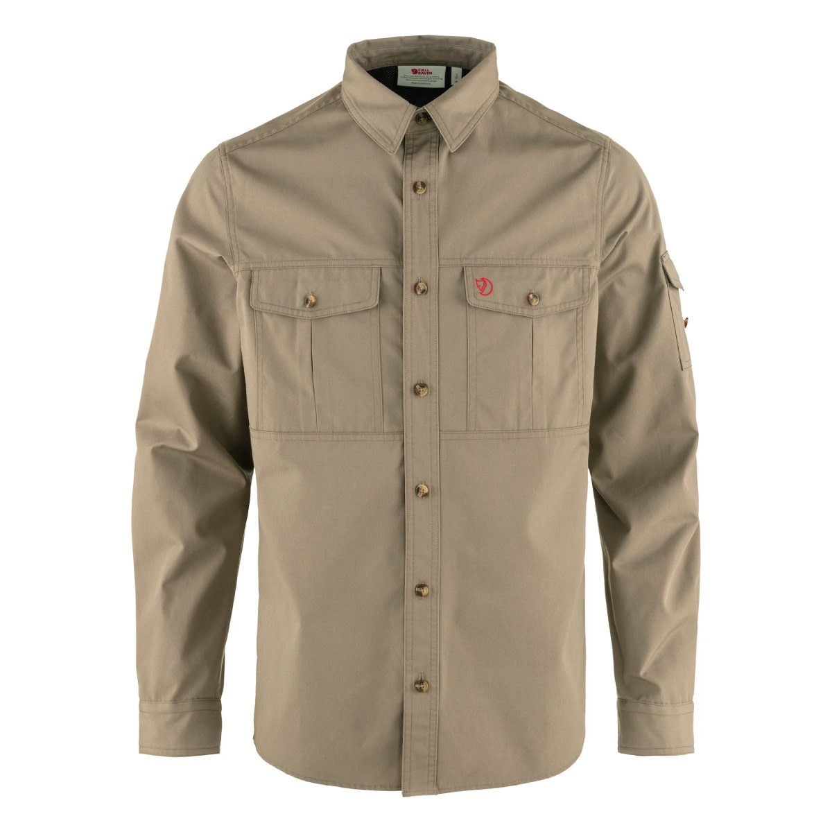 Hardwearing shirt with regular fit for trekking and multifaceted outdoor life. Made from unwaxed G-1000 that is pre-washed for a soft feel against the skin. The material wicks away moisture and dries fast giving maximum comfort during sweaty activities. Any excess heat can be released through ventilation openings with net fabric under the arms and in the yoke across the shoulders. Two chest pockets and an arm pocket, all with buttoned flaps. Sleeve buttons keep rolled up sleeves in place.