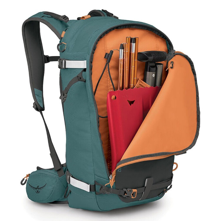 - SNOW-SPECIFIC FEATURES: Equipped with a snow-shed backpanel, diagonal and A-frame ski carry, snowboard carry, ice tool attachment and intuitive access to safety avalanche gear.