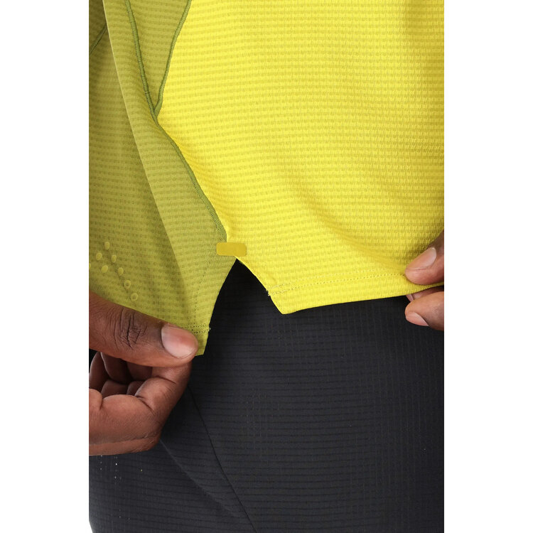 Highly responsive to your output, it’s cleverly designed to regulate your temperature. Built with ultralight Motiv™ Aero fabric, the Sonic Ultra Tee is fast-drying, quick-wicking and highly breathable. With its subtle mesh structure, the fabric wicks moisture away from the skin, keeping you dry on intense climbs. Laser cut vent holes in high heat areas dump heat quickly and keep the air flowing. Ideal on its own for running in the heat, or for layering over as you climb to higher altitudes and exposed terrain.