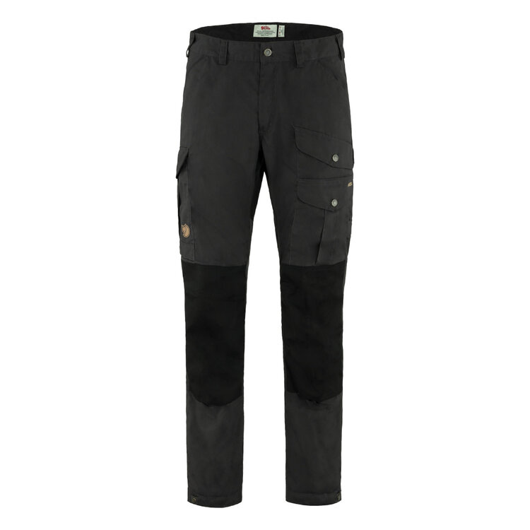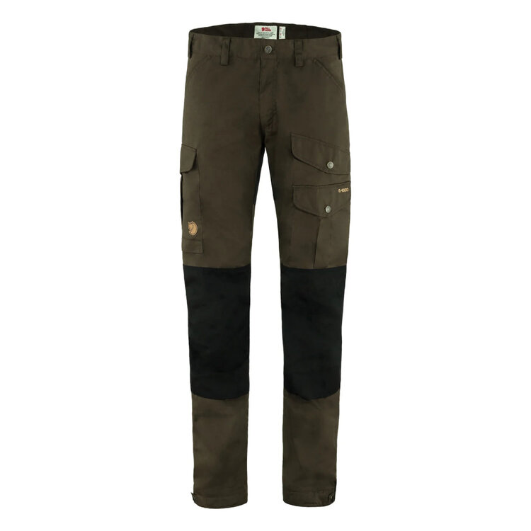 Durable trekking trousers for adventures in the mountains and forest. Made from durable wind and water-resistant G-1000 fabric with double layers over the rear and knees. Regular waist (mid waist) and regular fit with pre-shaped knees. Six practical pockets including a map pocket and a multitool pocket. Elastic strap adjustments with press buttons on leg endings. Available in three lengths; short, regular and long.