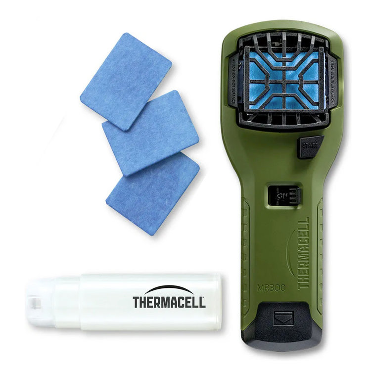 - Package contains: 1 olive MR300 repeller and 12 hours of refills - 3 repellent mats and 1 fuel cartridge