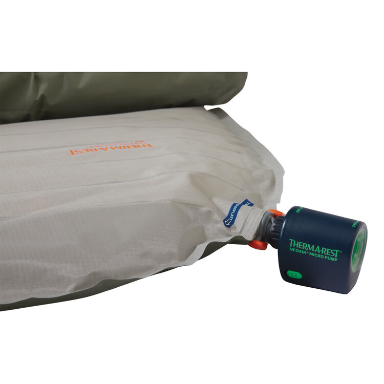 Tiny yet powerful, the NeoAir Micro Pump will inflate your pad quickly saving you precious time at camp. The 2.3 oz (65 g) pump uses two AAA batteries to inflate your WingLock or TwinLock in minutes. If you have a NeoAir pad with a WingLock valve, the handy pump can also deflate your mattress before packing it up and hitting the trail.
