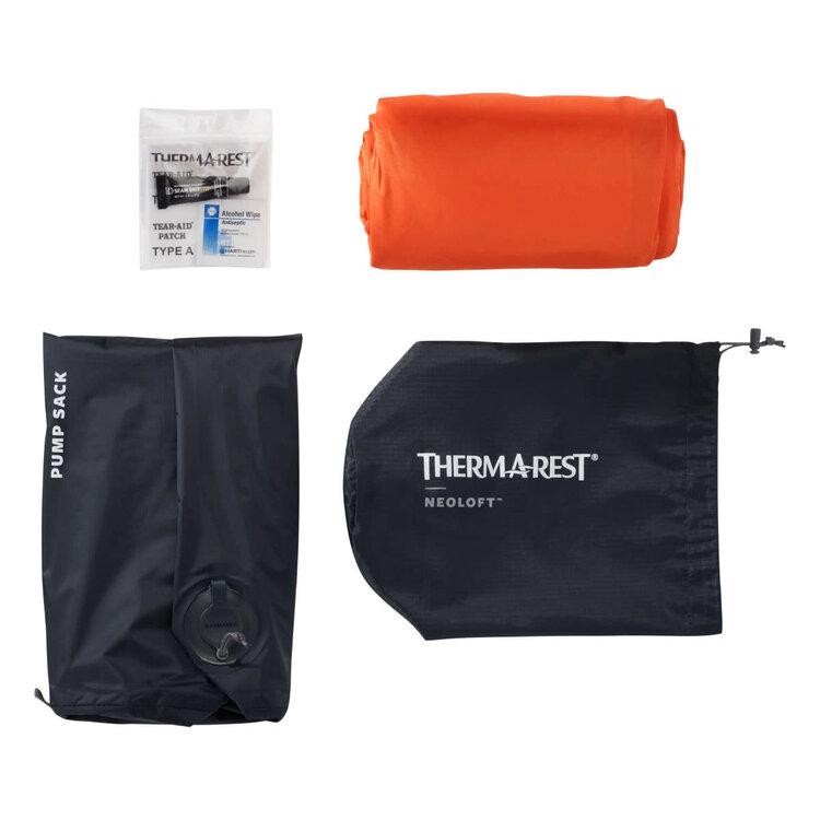 Therm-a-Rest fitted the NeoLoft with their high-volume-pad TwinLock™ Valve System. The two-valve system rapidly inflates the NeoLoft with a dedicated ‘In’ valve featuring one-way air flow, and quickly dumps air with a dedicated ‘Out’ valve. Paired with a high-volume, seam-sealed pump sack, the NeoLoft blows up and packs out quickly and efficiently.