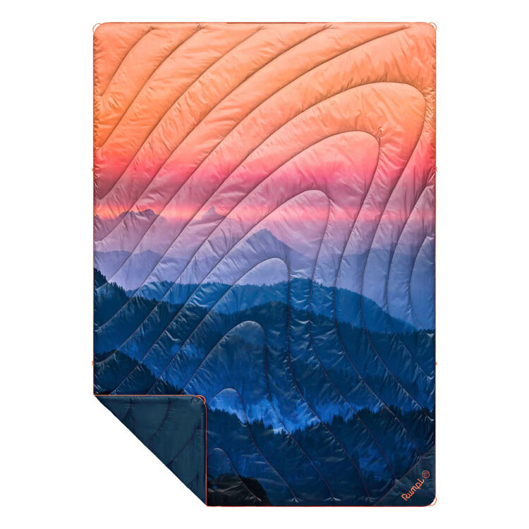 Embrace the allure of nature's celestial ballet with Rumpl's Alpenglow Original Puffy Blanket, a tribute to the radiant colors that grace mountain peaks during twilight.