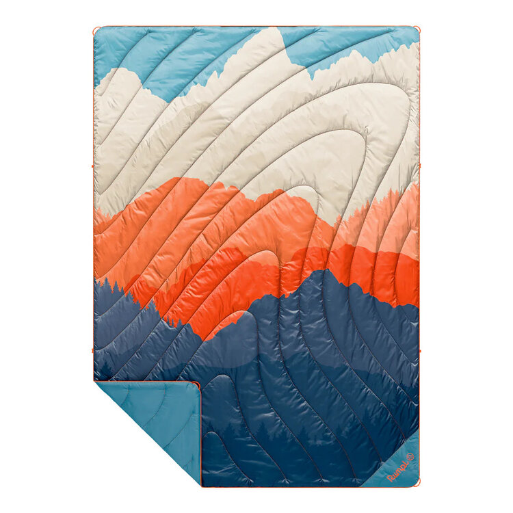 Meet the blanket that launched a brand – the original "blanket for everywhere," Rumpl's most iconic silhouette, and number one bestseller. Now in a Teton Glow print - A high contrast twist on their classic, best-selling mountain fade prints.