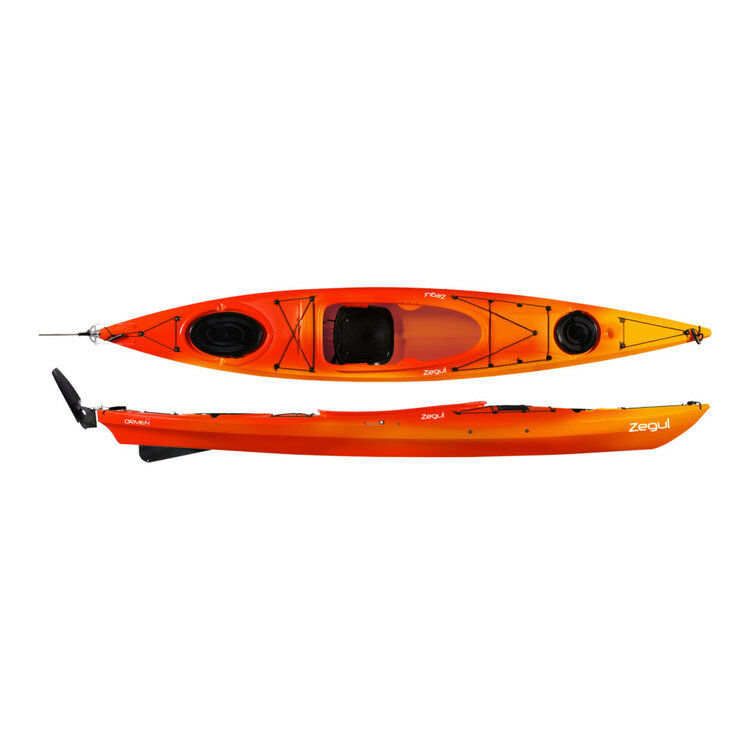 Ormen series kayaks are equipped with SmartTrack rudder and retractable skeg. Ormen LV, MV and HV are available in single-layer HDPE. Zegul 1-layer HDPE lay-up is made using only a single layer of high density polyethylene. They have upgraded their PE material so that the single layer is very stiff and durable, yet it is lighter than the other 2- or 3-layer constructions.