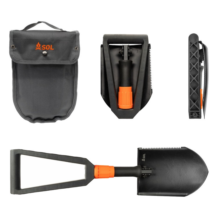 The SOL Packable Field Shovel is your newest trail and basecamp companion. Make quick work of any job with the durable carbon steel shovel head and serrated saw edge. Your hands will be thankful at the end of the day for the wide, easy-grip handle. When you’re ready to pack up, simply unscrew the orange fastener to fold the shovel down into its carry pouch. Weighing a mere 2 lbs., pack it up, pack it out, and be ready for the next great adventure.