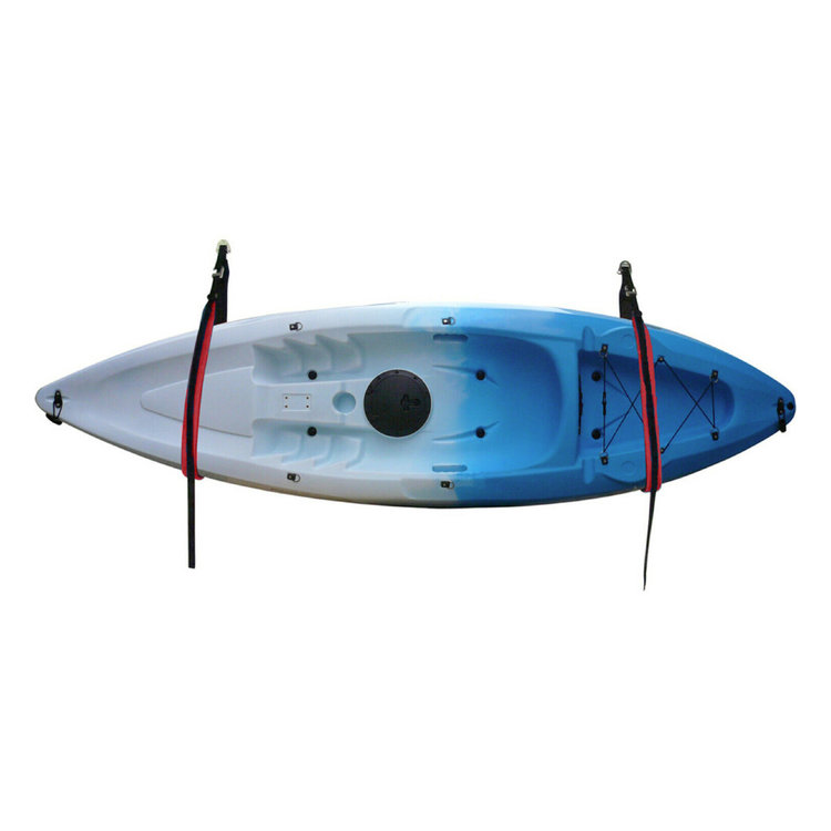 This boat storage solution provides easy and secure storage of your canoe or kayaks. Strong metal mounts and hooks make this storage solution burly enough to handle 100lbs loads, while padded straps keep your boat looking clean and unmarked.