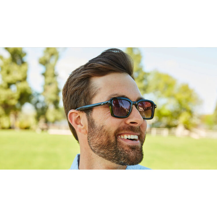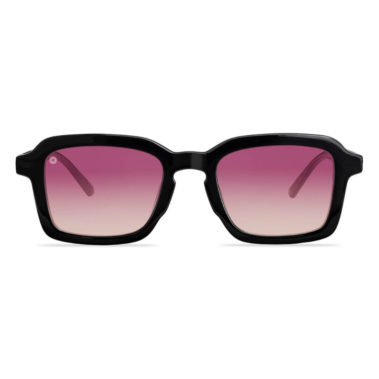 Pop on a pair of Persuasion Panoramas and see the world through the darkest of rosy hues. Maneuvering with mystique is effortless thanks to solid black frames throughout these polarized sunglasses, plus neutral gunmetal ‘K’ detailing for a nod to your style choices. Sangria fade lenses offer polarized UV400 protection and impact resistance for all those unexpected forays into the unknown. We’ll leave it up to you to decide where your enchanting vibes guide you next.