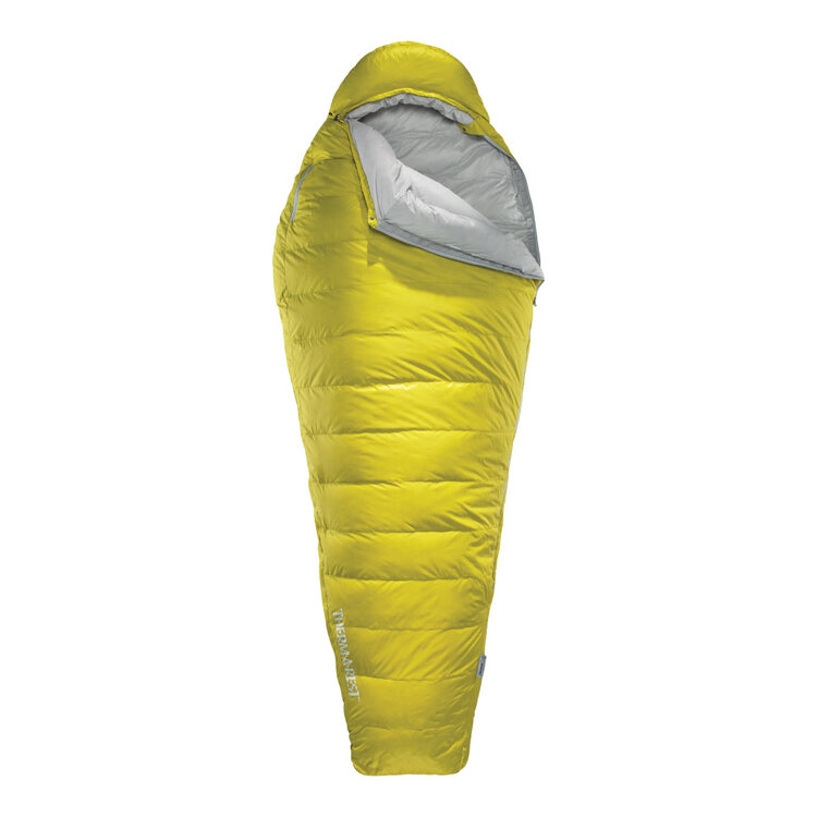When the forecast calls for warmer temps, grab the Parsec 32F/0C. It’s the perfect choice for maximum comfort at minimal weight on summer alpine nights and even through spring and fall at lower elevations. Filled with highly compressible 800-fill Nikwax Hydrophobic Down™ that absorbs 90% less water and dries 3x faster than untreated down, the Parsec keeps you warm and dry in wet conditions. The ultralight 20D GRS-certified recycled nylon shell is a smart choice for saving weight and the planet, while the new anti-snag YKK® zipper prevents wear and tear with easy entries and exits. Improved SynergyLink™ Connectors strap to your sleeping pad to keep your sleeping bag in place, allowing freedom of movement and boosting thermal efficiency. A refined shape and heat-mapped Zoned Insulation pushes that efficiency even more by strategically allocating down to priority areas, while Therm-a-Rest's down-lined Toe-asis™ foot pocket gives you a place to warm cold feet.