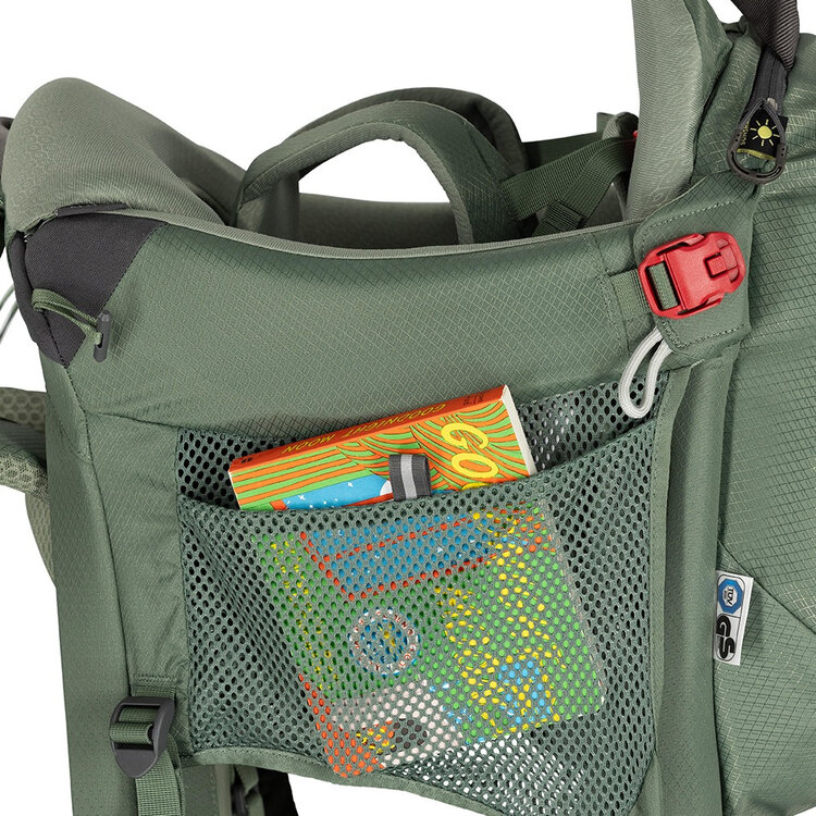 - Deluxe Child Cockpit: Double Halo harness with front-facing arm loops provides easy entry and buckling to safely carry the child Fully framed and padded cockpit with soft contact surfaces, anatomical fit and ventilated side panels provide comfort Adjustable child seat height with safety leg loops Fully removable and washable child cockpit