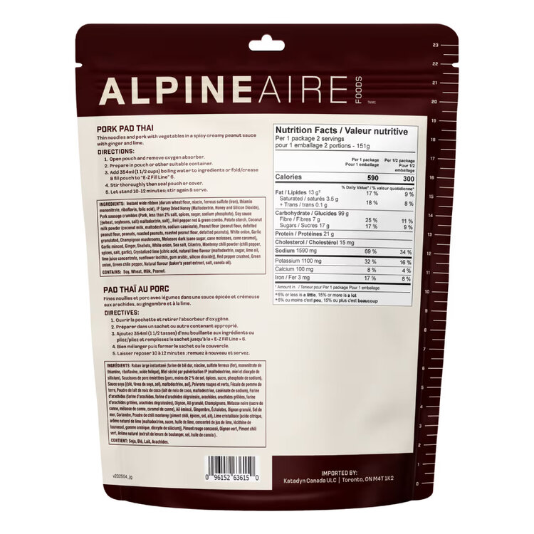 - Packaging clearly shows allergens and nutritional information, and has a graduated scale on one side, so you know how much water to add
