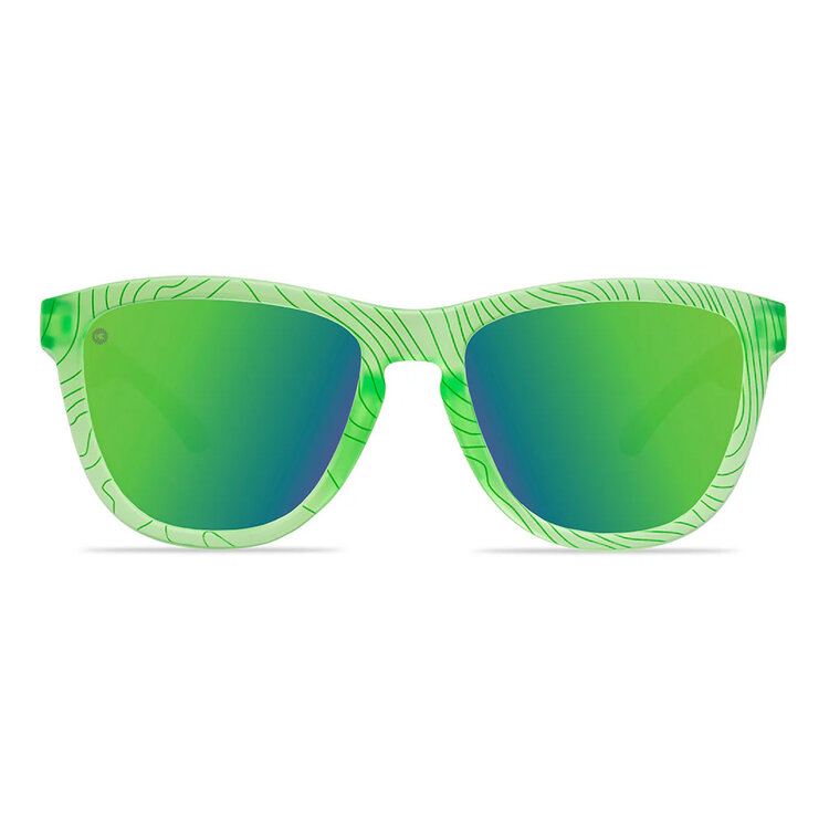 You’ve got your bug spray, walking sticks and you’re all ready to explore the wild–don’t forget your Jungle Summit Premiums before you go! Honeydew frames feature topographic linework reminiscent of elevational changes and perfectly match the jade ‘K’ arm detailing. Your polarized sunglasses will stay put thanks to super grippy nose pads designed for sport wear, and UV400 protection with impact resistance on deep green lenses keeps your eyes safe no matter how remote your location. We can already hear your exploration tales now!