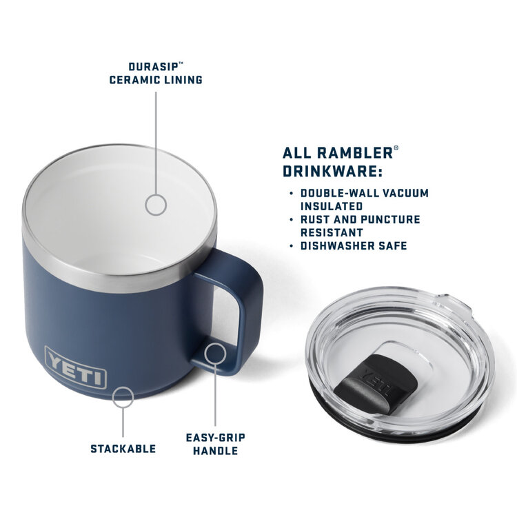 From hot sips at first light or campfire chili, this ceramic-lined mug holds everything and handles anything. The Rambler® 414 ml Stackable Mug is over-engineered with double-wall vacuum insulation and a welded handle for a solid grip. When you’re done with your beverages and bites, stack up the mugs for easy storage in tight spaces.