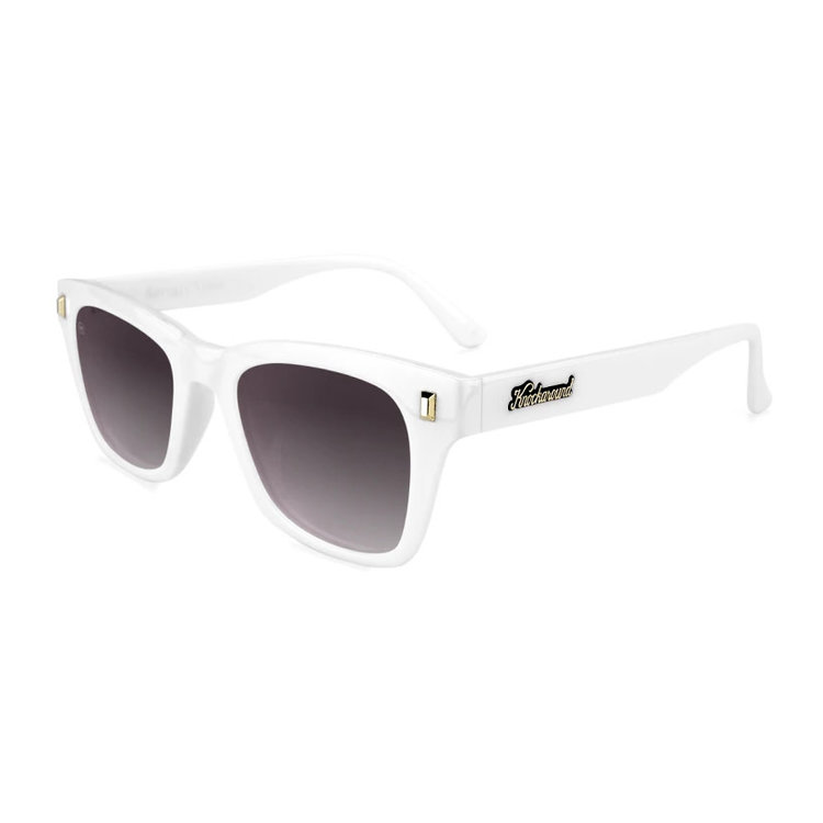 Glossy white frames and smoke gradient lenses create a study in contrast for this pair of Seventy Nines. Designed to balance vintage vibes and contemporary styling, these sunglasses feature a low-profile silhouette that’s ideal for small to medium-sized faces. Recessed gold hardware, UV400 lenses, and durable 5-barrel hinges finish off each pair of these great looking shades.