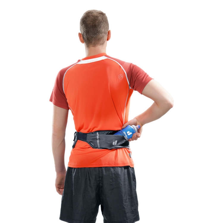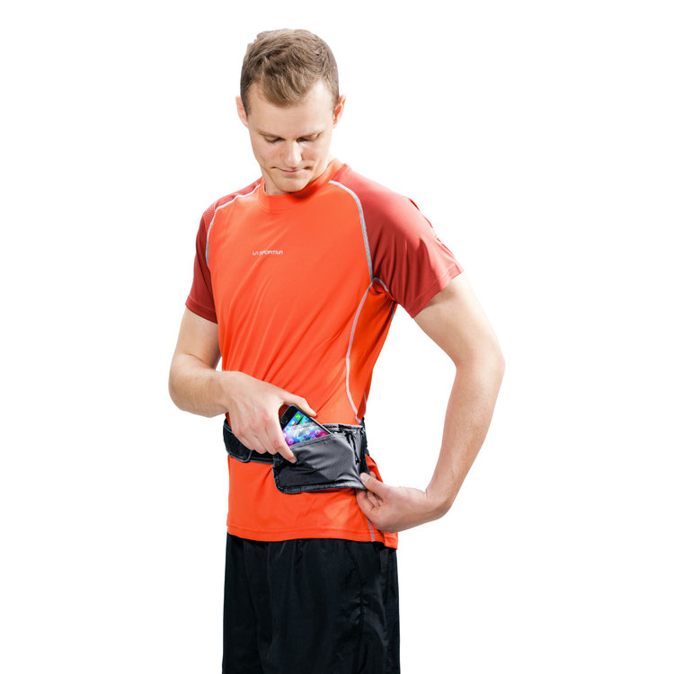 This cleverly organized, minimalist running belt keeps your valuables, cell phone and soft flasks securely stashed and easily accessible. A trim-to-fit waist belt cuts down on excess weight and ensures a personalized fit. This bluesign® product uses body fabric made of 100% recycled materials with components made using environmentally friendly, resource-efficient manufacturing practices. It meets the Green Button standard, is climate neutral, and PFC free.