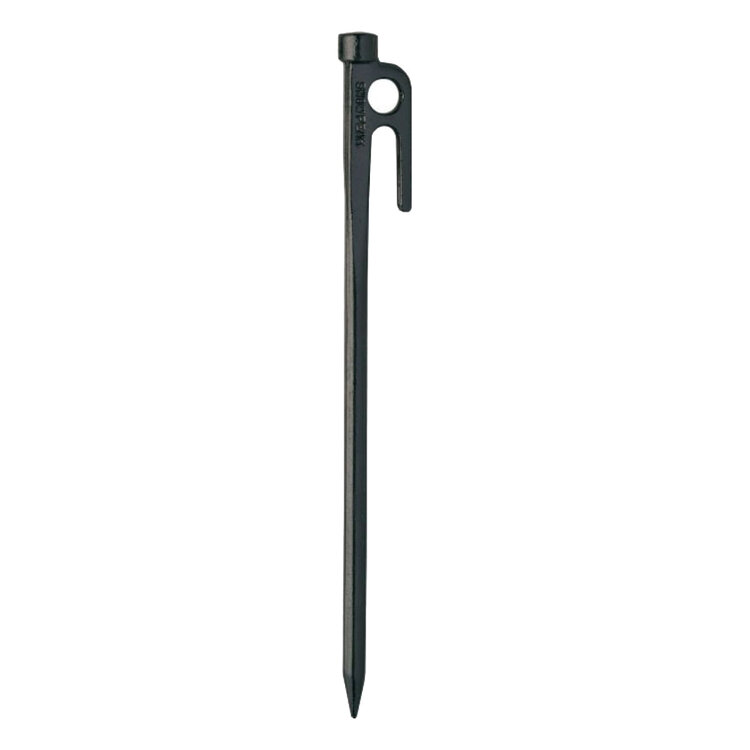 Designed and made in Japan, Solid Stake #50 is crafted from forged carbon steel. Use this 20 inch stake to secure the most heavy duty Snow Peak tents and tarps onto sandy or muddy ground. All Snow Peak Stakes feature a large head for easier hammering, a hole for quick removal and a hook for added strength in the ground.