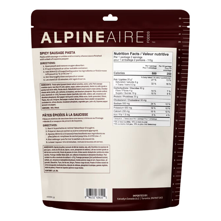 - Ingredients: pasta, spiral (ground durum wheat semolina, water, salt), pork sausage crumbles (pork, less than 2% salt, spices, sugar, sodium phosphate), nonfat dry milk (grade a pasteurized skim milk), potato starch, dehydrated sweet cream (sweet cream solids), cheddar cheese white [(milk, salt, cultures, & enzymes), and disodium phosphate. may contain sodium silico aluminate at 2%], parmesan cheese [(partially skim milk, culture, salt, enzymes) and disodium phosphate], bell pepper red & green combo, white onion, garlic granulated, chives, thyme, sea salt, oregano, red pepper crushed, natural lemon flavor (maltodextrin, dextrose, natural flavor, acacia gum, and tricalcium phosphate), cayenne pepper (ground red pepper)