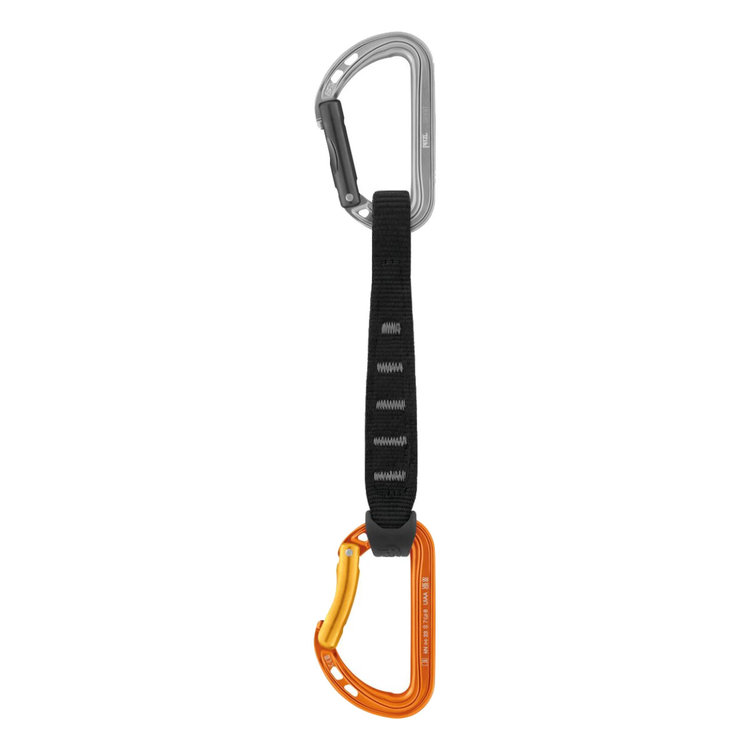 The benchmark for sport climbing and multi-pitch climbs! The SPIRIT EXPRESS quickdraw is lightweight, ergonomic, and versatile. The SPIRIT carabiners are designed to optimize use. The Keylock system helps prevent the carabiner from snagging when clipping and unclipping. Ergonomic, the EXPRESS quickdraw sling is the perfect shape to grab with your hand. The excellent weight-to-performance ratio allows you to adventure on different types of terrain. It is available in three lengths (11, 17, and 25 cm) to adapt to different uses and better manage rope drag.