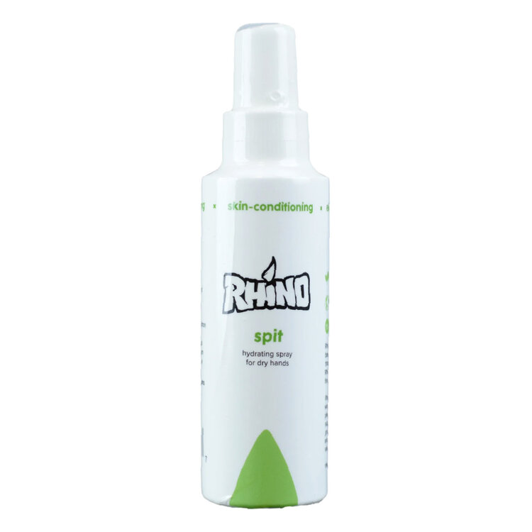 Rhino Spit is a non-greasy, aloe-based spray that is quick to absorb. Hydrating spray to reduce dry fire and glassy skin. Promotes skin hydration and elasticity to increase friction on holds.