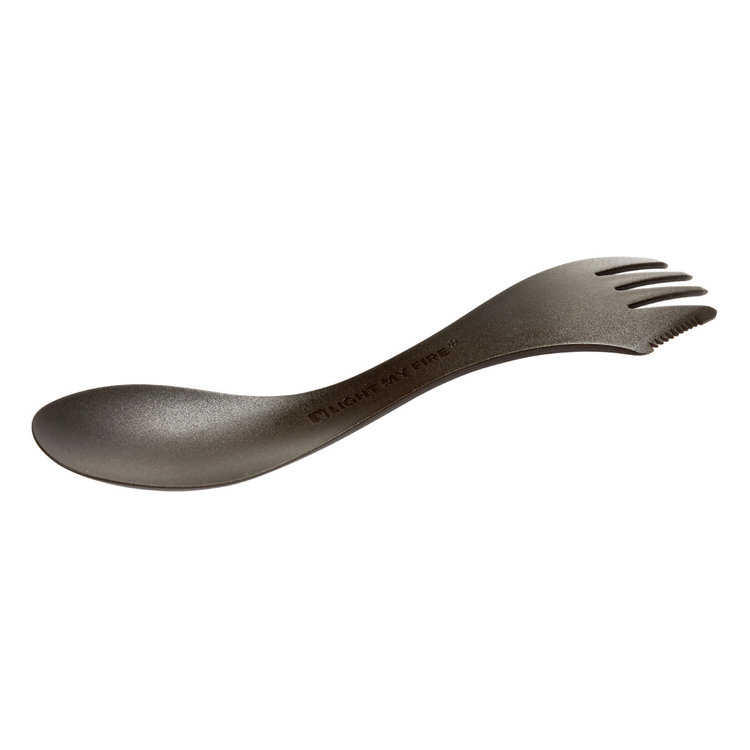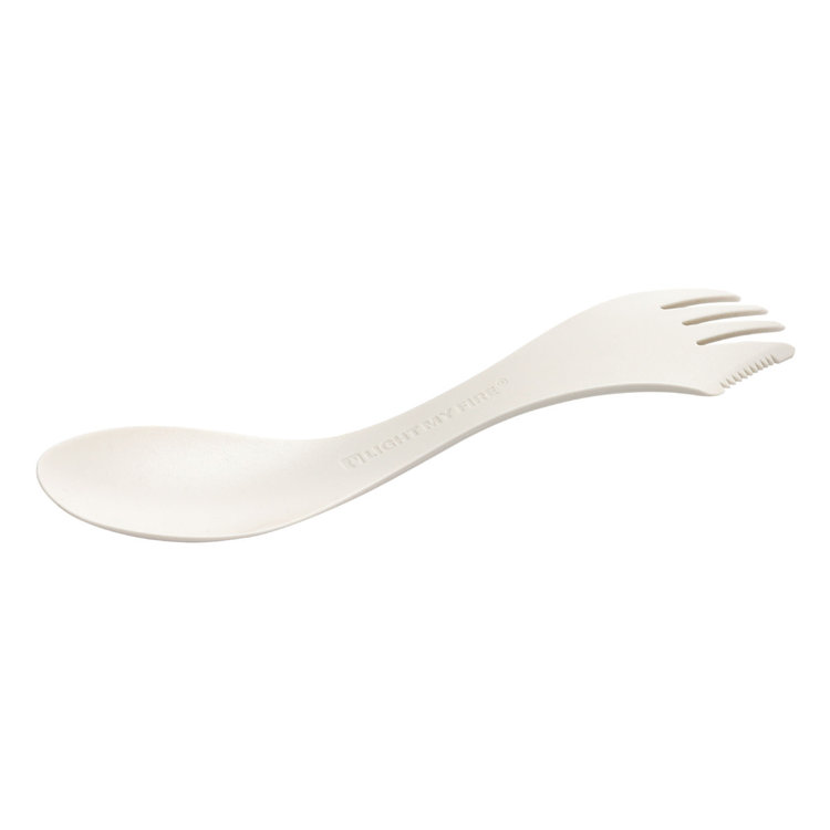 The Light My Fire Spork Large is the perfect reusable Spork option for stirring, turning and serving meals. Whether at home, at the grill or by the campfire, the Spork large is a useful and versatile addition to your cookware toolkit. This enlarged edition of our Spork Original has a serving/stirring spoon at one end, a large fork with serrated cutting edge at the other and a much longer handle. A great combination designed to be an all-in-one indoor and outdoor kitchen helper. Made from BPA-free Biobased plastics, safe to use with non-stick cookware and dishwasher safe.