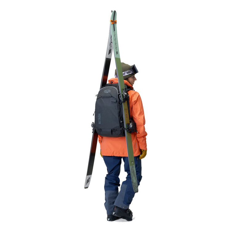 The all-new Stash Pro 32 is an over-the top backcountry pack and based on the feature-set of BCA's E2 Float pack, including: a slim riding design, full skl/gear carry options, back stash routing, side stash pocket and high end materials. With two sizing options to accommodate smaller torsos.