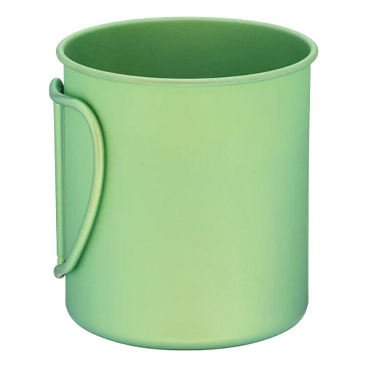 The Ti-Single Anodized cup is made of brightly anodized titanium. The cup features a matte finish and foldable handles for compact storage and is durable enough for a lifetime of use. Pair the Ti-Single Anodized Cup with the Titanium Spork for a complete set.