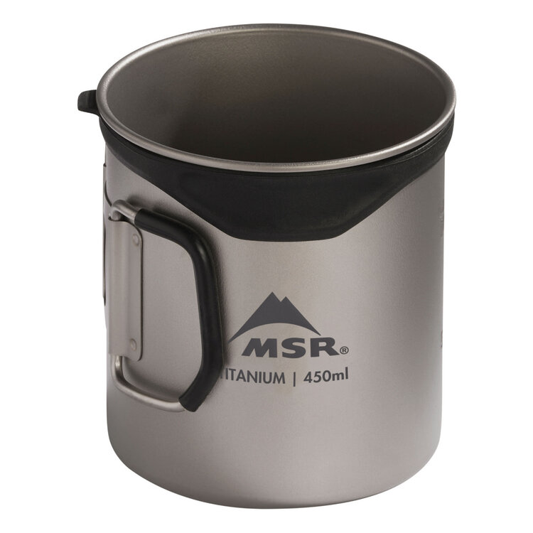 Don’t mistake the Titan Cup 450mL for just another coffee mug. This versatile ultralight cup pulls double duty as a petite cook pot. A removable silicone lip saver protects your mouth from hot titanium (just remove it before using the cup on a stove please). Interior graduation lines allow for fast and easy liquid measuring, and silicone-coated folding handles are comfortable to hold. Plus, the entire Titan cookware collection nests together with a stove so you can easily build your ideal cook setup.